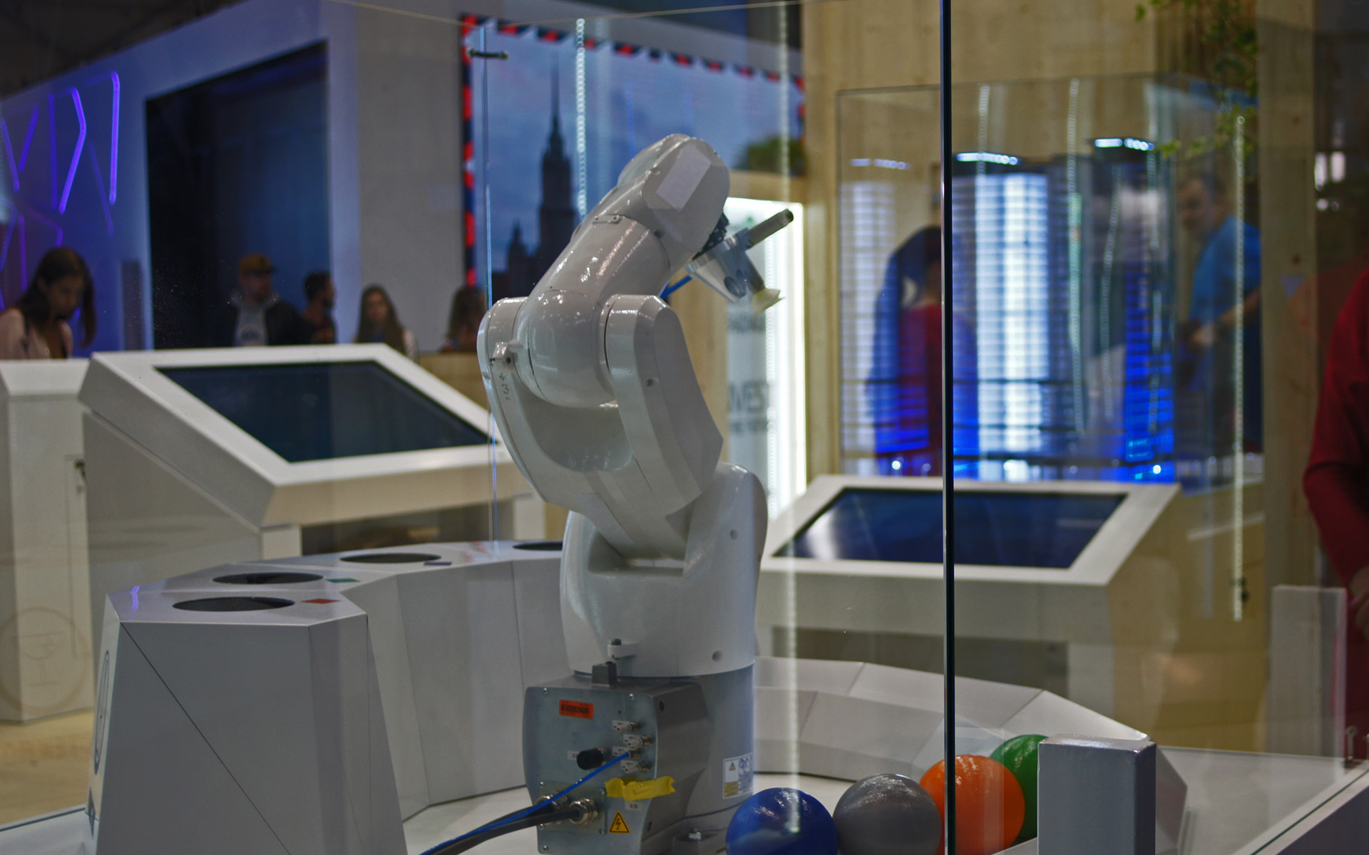 Кинетическая интерактивная инсталляция «Свет» — самая активная зона стенда. Она демонстрирует посетителям преимущества диодного освещения.
